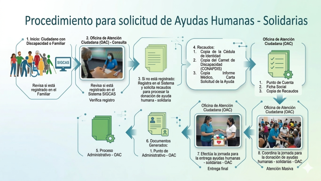 🧭 ¿A DÓNDE DEBO IR?Si tu necesidad es:Registrate por primera vez Planta baja🦽 Solicitar silla de ruedas, bastón o andadera. Planta Baja 📋 Los Pasos del ProcedimientoInicio del Trámite: El ciudadano con discapacidad o su familiar presenta el caso. 👨👩👧👦Solicitud Presencial: Acudir a la coordinación estatal u oficina correspondiente. 🏢Visita Social: El equipo técnico realiza una inspección en el hogar para evaluar las condiciones. 🏠Recaudos Necesarios: Entrega de los documentos legales y médicos. 📑Revisión y Aprobación: El comité evalúa el expediente para validar la ayuda. ✅Entrega: Se otorga el beneficio de manera formal. 🎁