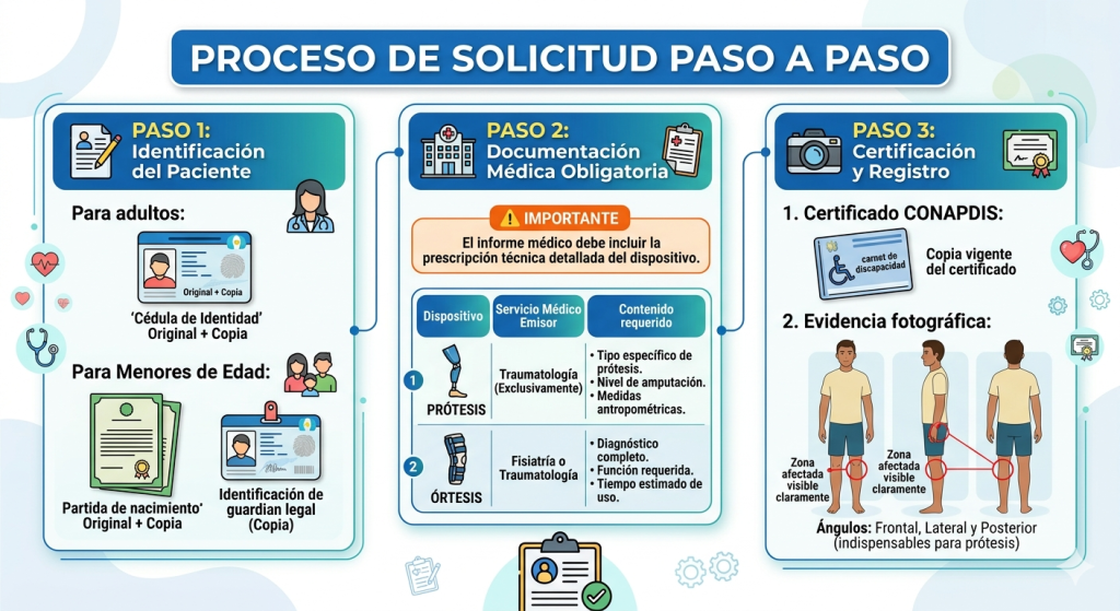 • Prótesis: El informe debe ser emitido exclusivamente por Traumatología e incluir el tipo específico de prótesis, el nivel de amputación y las medidas antropométricas.